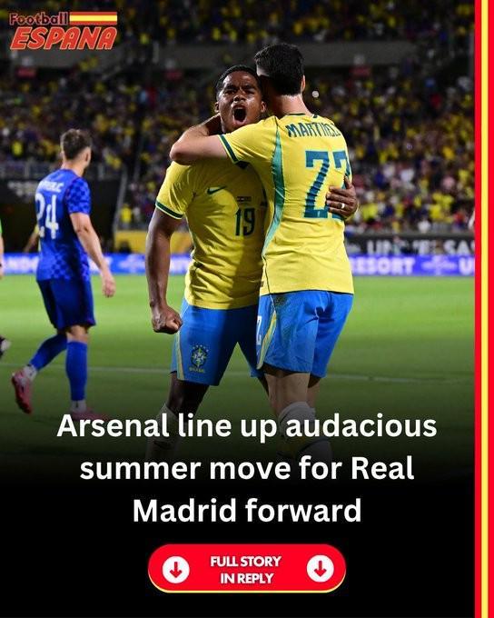 北京时间4月26日,据西班牙媒体Football España消息,阿森纳正在密切关注皇马球员恩德里克,并计划在今夏引进这名巴西前锋。